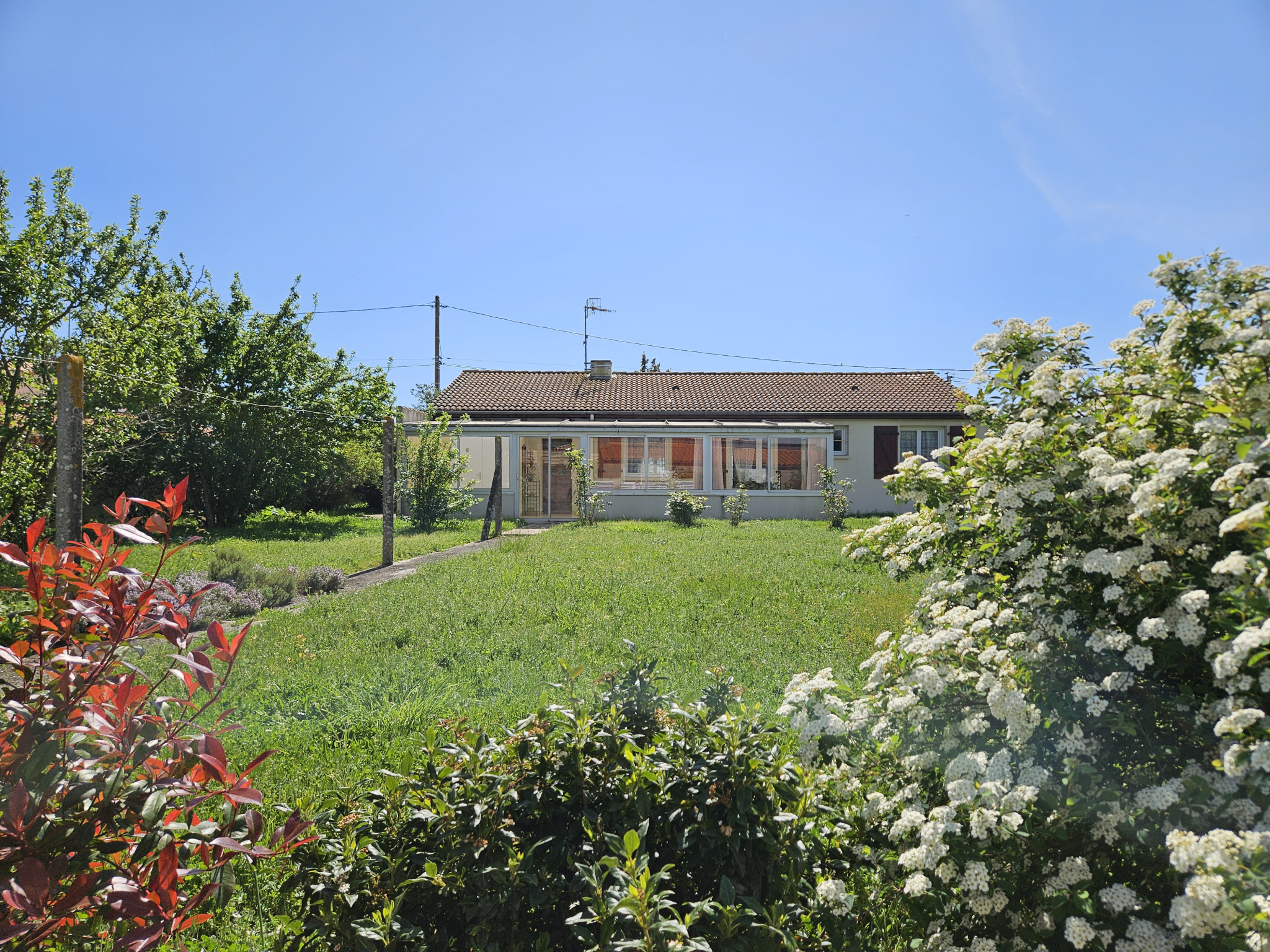 Maison de 76m² composée d'un séjour/salon avec cheminée insert, une cuisine, une grande véranda de 27m², deux chambres, une salle d'eau avec douche et lavabo, un wc séparé et une buanderie avec évier. Attenant à l'habitation un garage de 20m². A l'extérieur, trois petites dépendances. Le tout sur un agréable terrain de 960m². Les informations sur les risques auxquels le bien est exposé sont disponibles sur le site Géorisques : www.georisques.gouv.fr